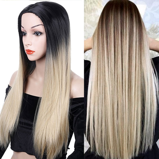 AOSIWIG Ombre Brown Straight Long Synthetic Wigs for Women Black Pink Blue Purple Wigs 24 inch Cosplay Wigs 6 Colors